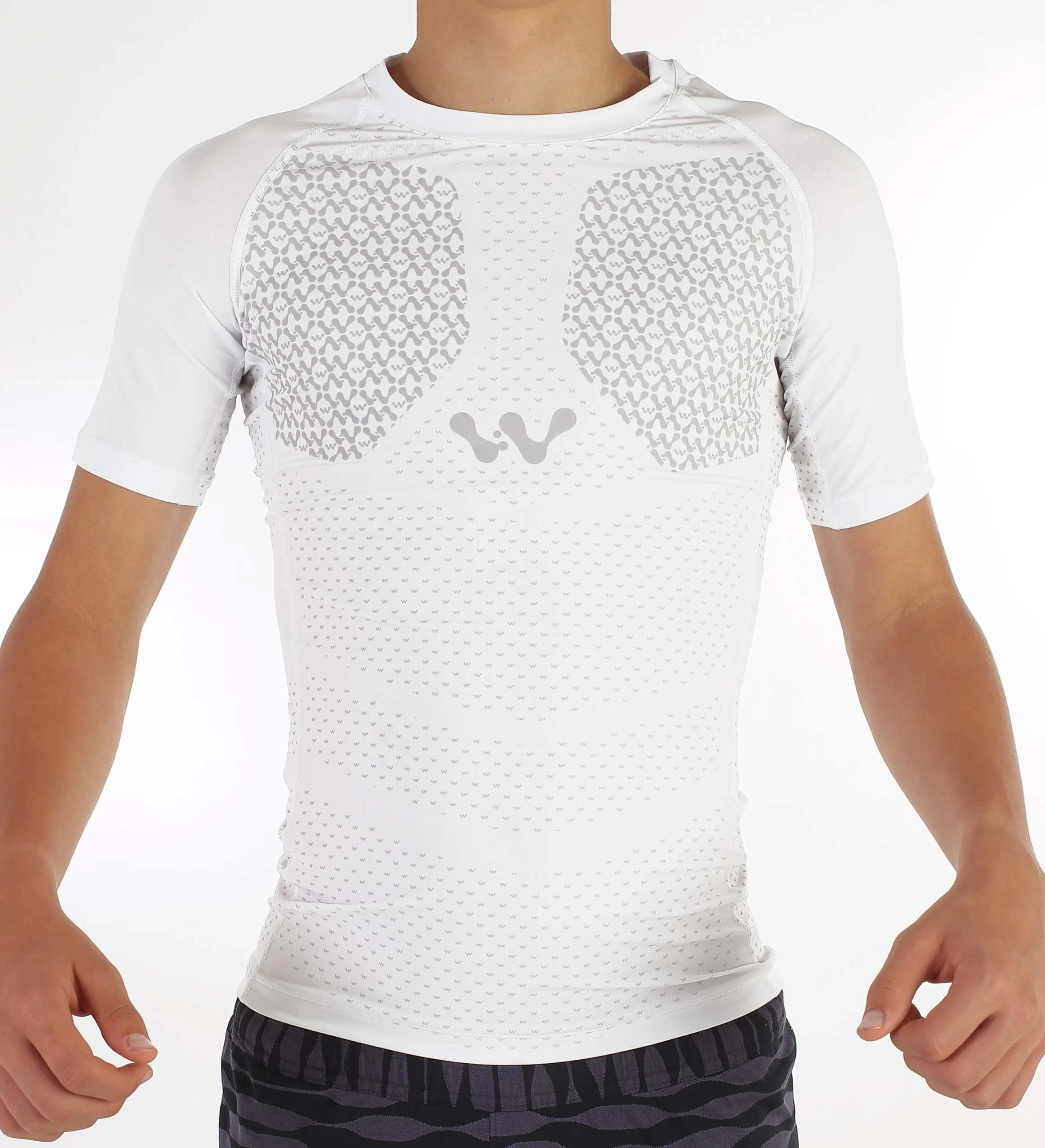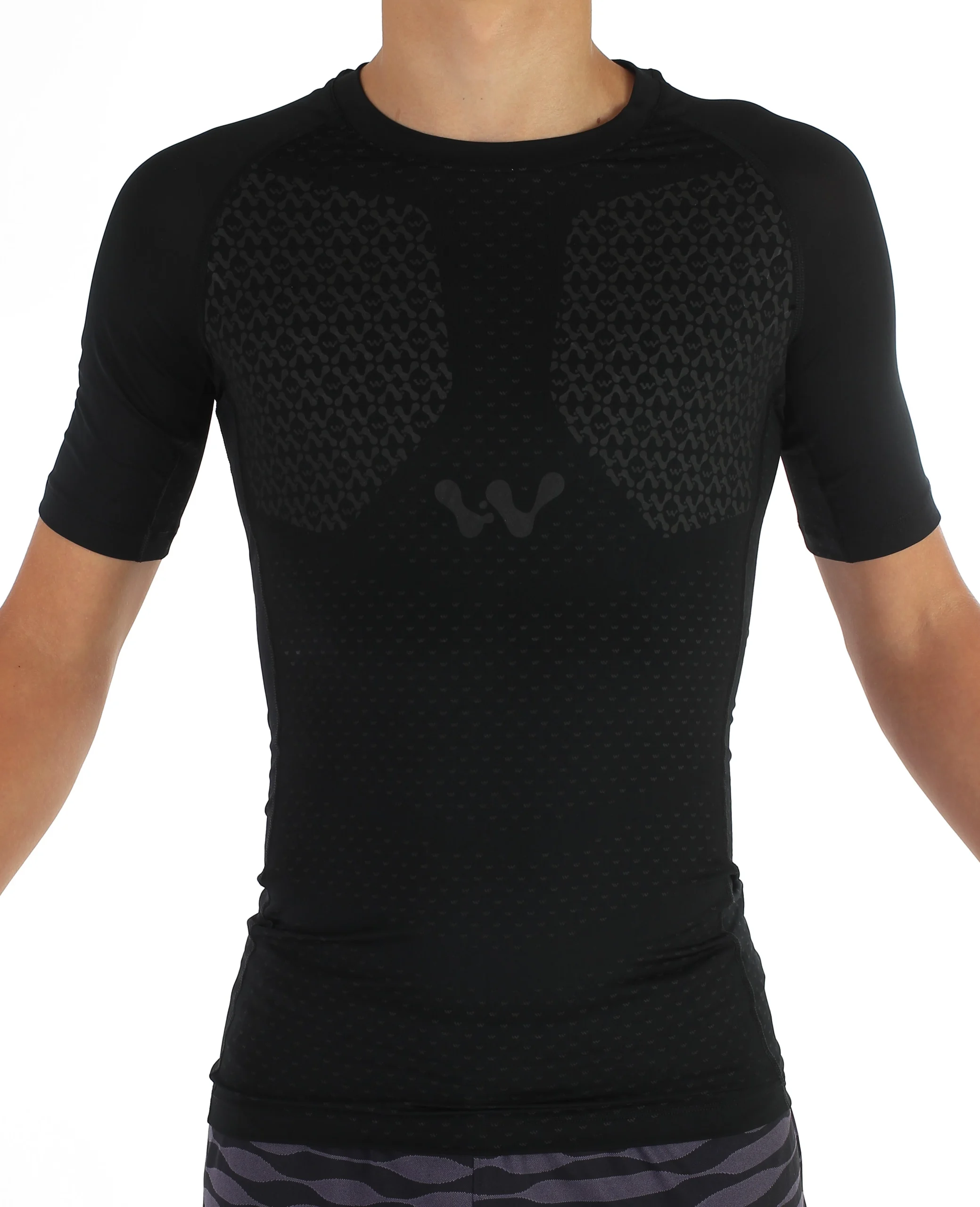 A t-shirt de manga curta da Flowance incorpora a tecnologia RT num revestimento estampado no têxtil, que assegura o equilíbrio térmico do corpo e garante propriedades antifúngicas e antibacterianas. Tem ainda propriedades térmicas de permeabilidade do ar, ao vapor e à recuperação da humidade.